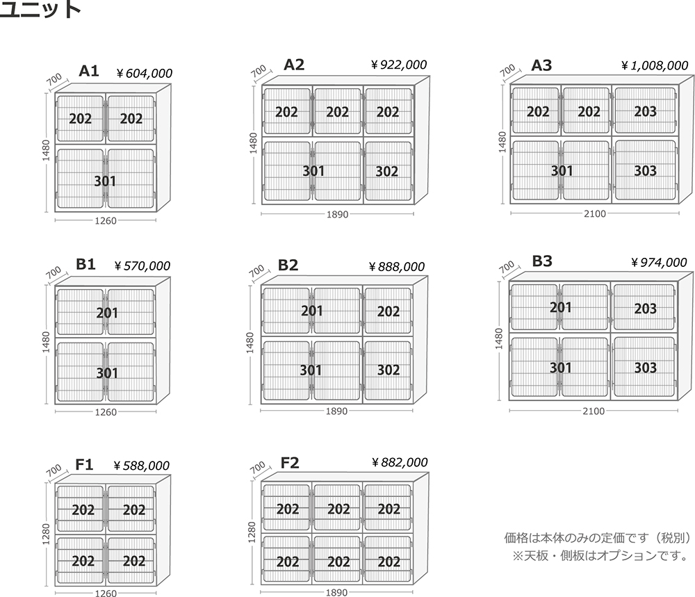 スペースに合わせた組み合わせ(ユニット)が可能です。